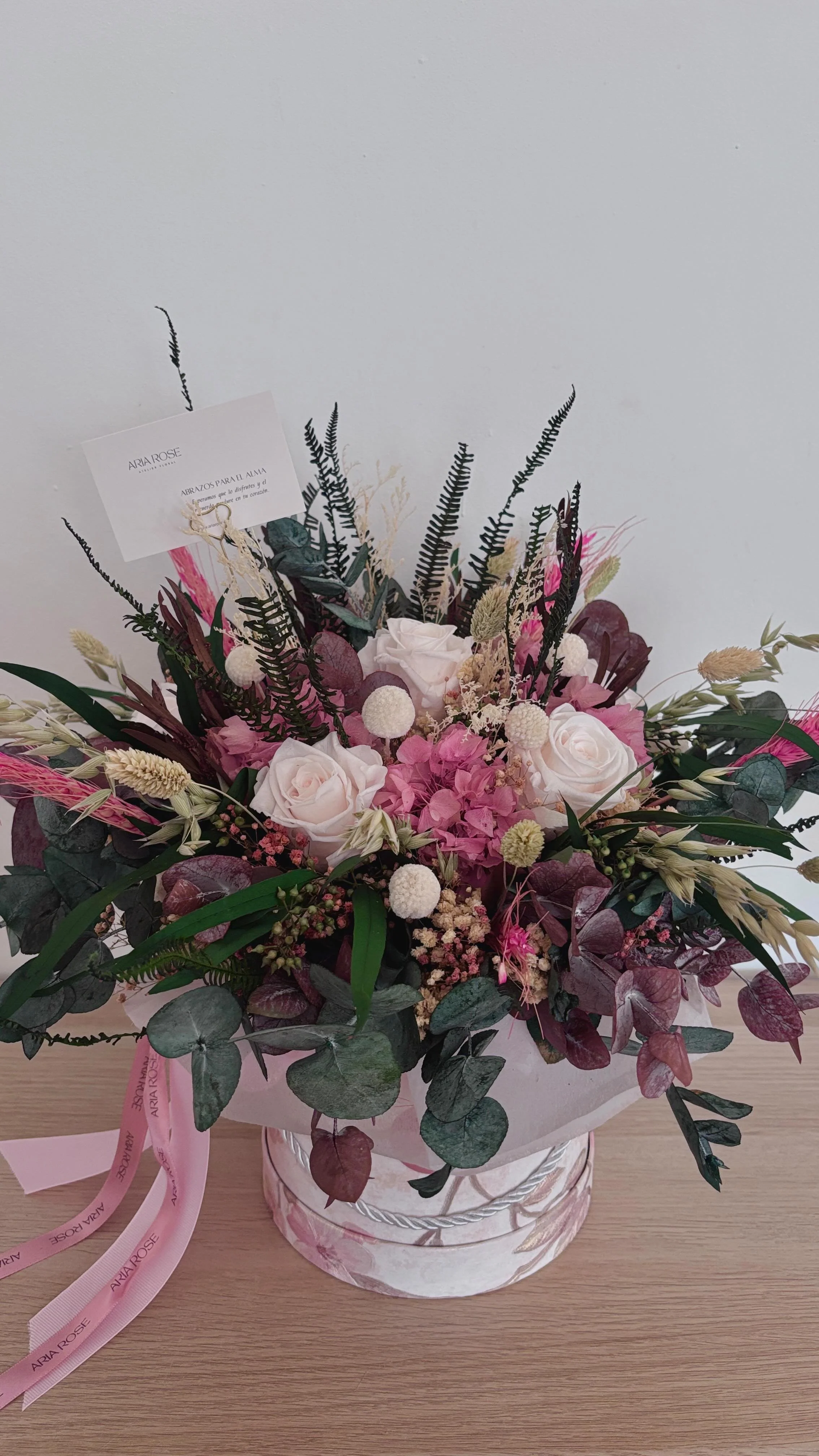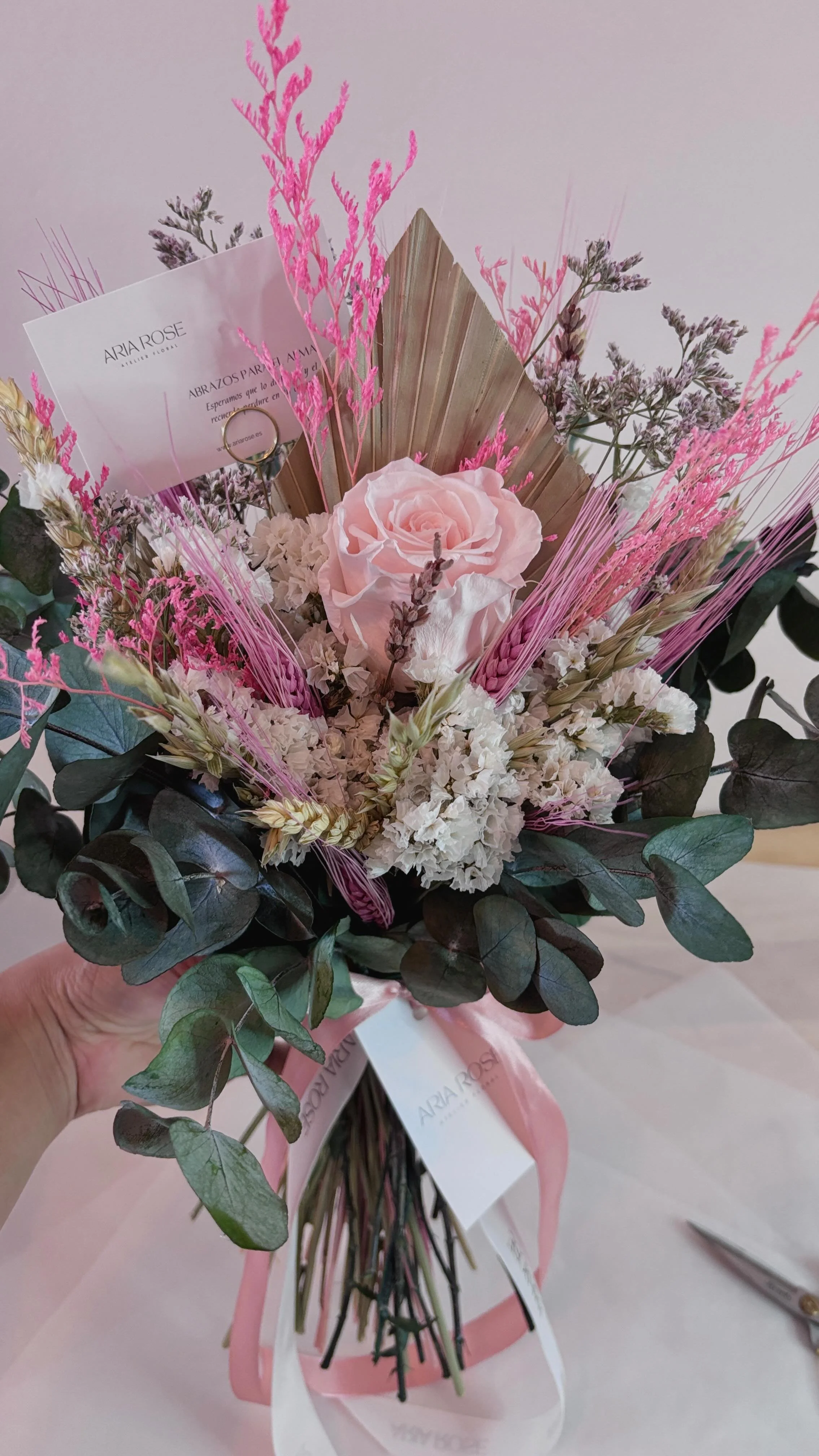 En Aria Rose trabajamos con flores frescas, preservadas y secas, creando diseños florales artesanales pensados para acompañar momentos especiales y espacios con alma.
