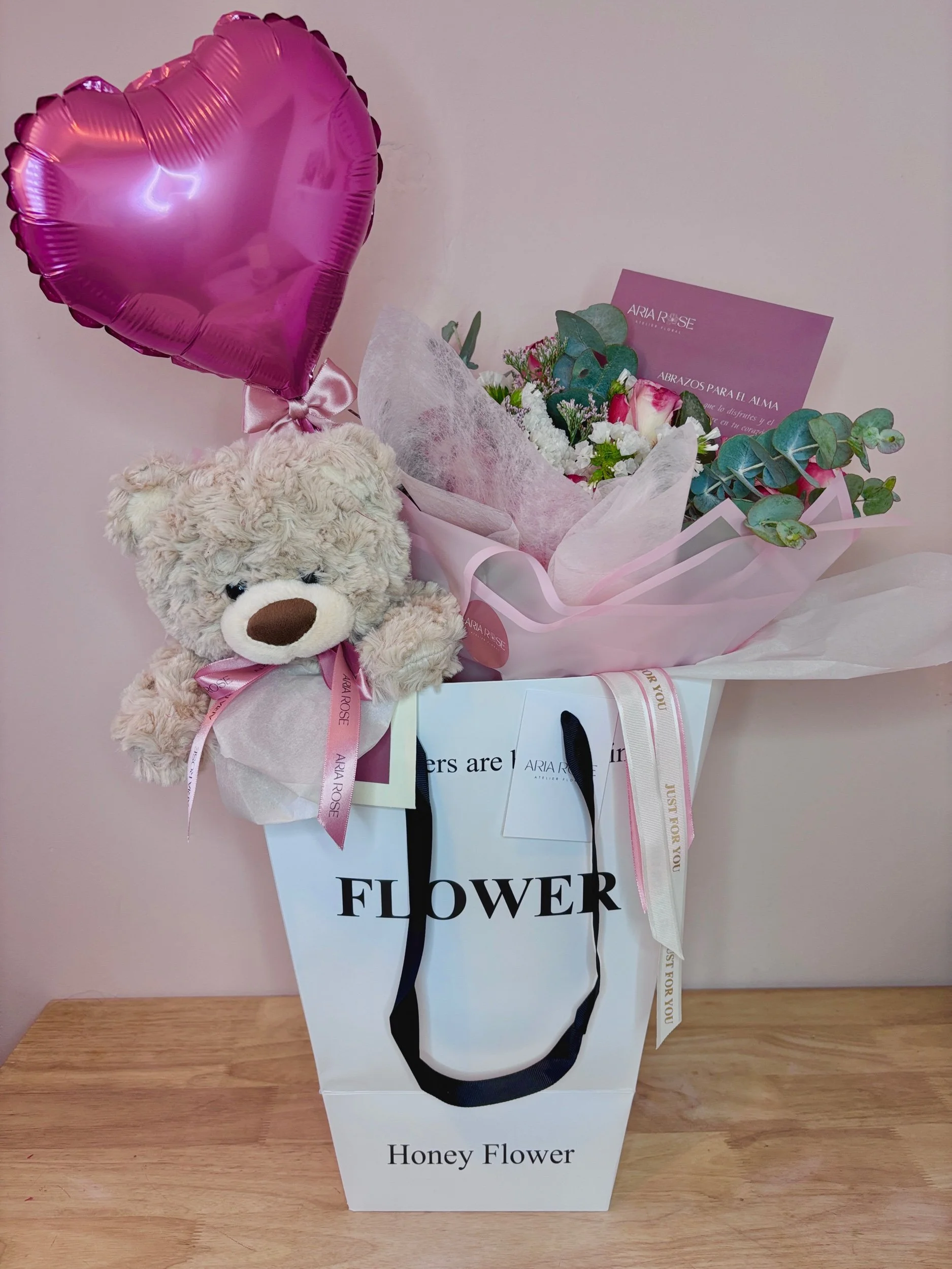 El Ramo Especial Día de la Madre de Aria Rose fue una creación única, diseñada para rendir homenaje al amor más puro y generoso: el de una madre. Este diseño exclusivo combinó elegancia, color y emoción en un arreglo floral inolvidable, presentado en nuestra icónica caja de regalo con cinta conmemorativa “Feliz Día de la Madre”.